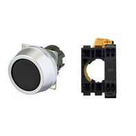 押ボタンスイッチ(φ30), 非照光, 金属ベゼル, フルガード形, モーメンタリ, ボタンの色: 黒(不透明), IP66, プッシュインPlus端子台, 接点構成: NO/-/-