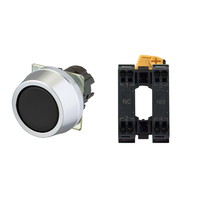 押ボタンスイッチ(φ30), 非照光, 金属ベゼル, フルガード形, モーメンタリ, ボタンの色: 黒(不透明), IP66, プッシュインPlus端子台, 接点構成: NO/-/NC