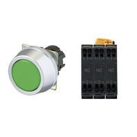 押ボタンスイッチ(φ30), 非照光, 金属ベゼル, フルガード形, モーメンタリ, ボタンの色: 緑(不透明), IP66, プッシュインPlus端子台, 接点構成: NC/NC/NC