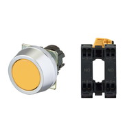 押ボタンスイッチ(φ30), 非照光, 金属ベゼル, フルガード形, モーメンタリ, ボタンの色: 黄(不透明), IP66, プッシュインPlus端子台, 接点構成: NO/-/NO