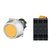 押ボタンスイッチ(φ30), 非照光, 金属ベゼル, フルガード形, モーメンタリ, ボタンの色: 黄(不透明), IP66, プッシュインPlus端子台, 接点構成: NO/NO/NO