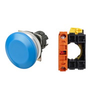 押ボタンスイッチ(φ30), 非照光, 金属ベゼル, きのこ形, オルタネイト, ボタンの色: 青(不透明), IP66, ねじ端子台, 接点構成: -/-/NC