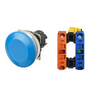 押ボタンスイッチ(φ30), 非照光, 金属ベゼル, きのこ形, オルタネイト, ボタンの色: 青(不透明), IP66, ねじ端子台, 接点構成: NO/-/NC