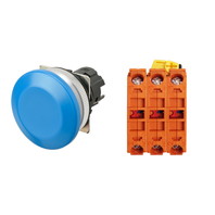 Pushbutton Switch (30-dia.), Non-lighted, Brushed metal bezel, Mushroom, Alternate, Button color: Blue (Opaque), IP66, Screw terminal block, Contacts: NC/NC/NC