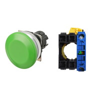 押ボタンスイッチ(φ30), 非照光, 金属ベゼル, きのこ形, オルタネイト, ボタンの色: 緑(不透明), IP66, ねじ端子台, 接点構成: NO/-/-