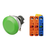 押ボタンスイッチ(φ30), 非照光, 金属ベゼル, きのこ形, オルタネイト, ボタンの色: 緑(不透明), IP66, ねじ端子台, 接点構成: NO/NC/NC