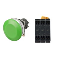押ボタンスイッチ(φ30), 非照光, 金属ベゼル, きのこ形, オルタネイト, ボタンの色: 緑(不透明), IP66, プッシュインPlus端子台, 接点構成: NO/NC/NC