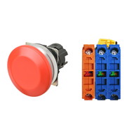 押ボタンスイッチ(φ30), 非照光, 金属ベゼル, きのこ形, オルタネイト, ボタンの色: 赤(不透明), IP66, ねじ端子台, 接点構成: NO/NO/NC