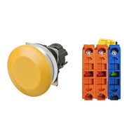 押ボタンスイッチ(φ30), 非照光, 金属ベゼル, きのこ形, オルタネイト, ボタンの色: 黄(不透明), IP66, ねじ端子台, 接点構成: NO/NC/NC