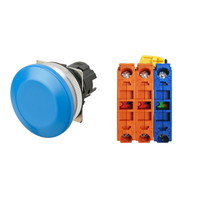 押ボタンスイッチ(φ30), 非照光, 金属ベゼル, きのこ形, モーメンタリ, ボタンの色: 青(不透明), IP66, ねじ端子台, 接点構成: NO/NC/NC
