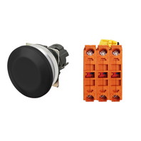押ボタンスイッチ(φ30), 非照光, 金属ベゼル, きのこ形, モーメンタリ, ボタンの色: 黒(不透明), IP66, ねじ端子台, 接点構成: NC/NC/NC