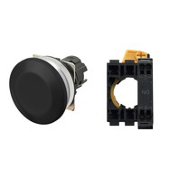 押ボタンスイッチ(φ30), 非照光, 金属ベゼル, きのこ形, モーメンタリ, ボタンの色: 黒(不透明), IP66, プッシュインPlus端子台, 接点構成: NO/-/-