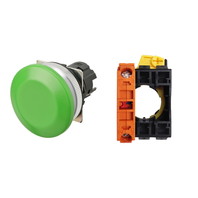 押ボタンスイッチ(φ30), 非照光, 金属ベゼル, きのこ形, モーメンタリ, ボタンの色: 緑(不透明), IP66, ねじ端子台, 接点構成: -/-/NC