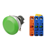 押ボタンスイッチ(φ30), 非照光, 金属ベゼル, きのこ形, モーメンタリ, ボタンの色: 緑(不透明), IP66, ねじ端子台, 接点構成: NO/NO/NC