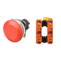 押ボタンスイッチ(φ30), 非照光, 金属ベゼル, きのこ形, モーメンタリ, ボタンの色: 赤(不透明), IP66, ねじ端子台, 接点構成: NC/-/NC