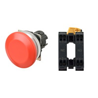 押ボタンスイッチ(φ30), 非照光, 金属ベゼル, きのこ形, モーメンタリ, ボタンの色: 赤(不透明), IP66, プッシュインPlus端子台, 接点構成: NO/-/NC