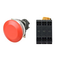 押ボタンスイッチ(φ30), 非照光, 金属ベゼル, きのこ形, モーメンタリ, ボタンの色: 赤(不透明), IP66, プッシュインPlus端子台, 接点構成: NO/NC/NC