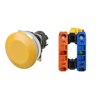 押ボタンスイッチ(φ30), 非照光, 金属ベゼル, きのこ形, モーメンタリ, ボタンの色: 黄(不透明), IP66, ねじ端子台, 接点構成: NO/-/NC
