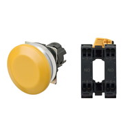 押ボタンスイッチ(φ30), 非照光, 金属ベゼル, きのこ形, モーメンタリ, ボタンの色: 黄(不透明), IP66, プッシュインPlus端子台, 接点構成: NO/-/NO