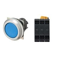 押ボタンスイッチ(φ30), 非照光, 金属ベゼル, 平形, オルタネイト, ボタンの色: 青(不透明), IP66, プッシュインPlus端子台, 接点構成: NO/NC/NC