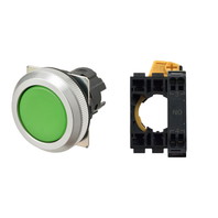 押ボタンスイッチ(φ30), 非照光, 金属ベゼル, 平形, オルタネイト, ボタンの色: 緑(不透明), IP66, プッシュインPlus端子台, 接点構成: NO/-/-