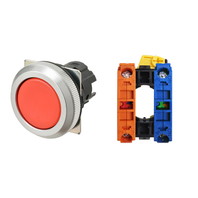 押ボタンスイッチ(φ30), 非照光, 金属ベゼル, 平形, オルタネイト, ボタンの色: 赤(不透明), IP66, ねじ端子台, 接点構成: NO/-/NC