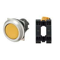 押ボタンスイッチ(φ30), 非照光, 金属ベゼル, 平形, オルタネイト, ボタンの色: 黄(不透明), IP66, プッシュインPlus端子台, 接点構成: NC/-/NC