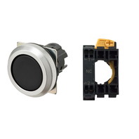 押ボタンスイッチ(φ30), 非照光, 金属ベゼル, 平形, モーメンタリ, ボタンの色: 黒(不透明), IP66, プッシュインPlus端子台, 接点構成: -/-/NC