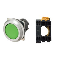 押ボタンスイッチ(φ30), 非照光, 金属ベゼル, 平形, モーメンタリ, ボタンの色: 緑(不透明), IP66, プッシュインPlus端子台, 接点構成: -/-/NC