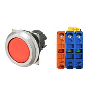 押ボタンスイッチ(φ30), 非照光, 金属ベゼル, 平形, モーメンタリ, ボタンの色: 赤(不透明), IP66, ねじ端子台, 接点構成: NO/NO/NC
