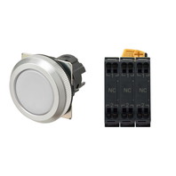 押ボタンスイッチ(φ30), 非照光, 金属ベゼル, 平形, モーメンタリ, ボタンの色: 白(不透明), IP66, プッシュインPlus端子台, 接点構成: NC/NC/NC