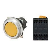 押ボタンスイッチ(φ30), 非照光, 金属ベゼル, 平形, モーメンタリ, ボタンの色: 黄(不透明), IP66, プッシュインPlus端子台, 接点構成: NO/NO/NO