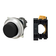 押ボタンスイッチ(φ30), 非照光, 金属ベゼル, 突出形, オルタネイト, ボタンの色: 黒(不透明), IP66, プッシュインPlus端子台, 接点構成: -/-/NC