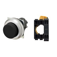 押ボタンスイッチ(φ30), 非照光, 金属ベゼル, 突出形, オルタネイト, ボタンの色: 黒(不透明), IP66, プッシュインPlus端子台, 接点構成: NO/-/-