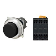 押ボタンスイッチ(φ30), 非照光, 金属ベゼル, 突出形, オルタネイト, ボタンの色: 黒(不透明), IP66, プッシュインPlus端子台, 接点構成: NC/NC/NC