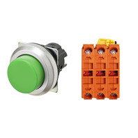 押ボタンスイッチ(φ30), 非照光, 金属ベゼル, 突出形, オルタネイト, ボタンの色: 緑(不透明), IP66, ねじ端子台, 接点構成: NC/NC/NC