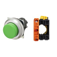 押ボタンスイッチ(φ30), 非照光, 金属ベゼル, 突出形, モーメンタリ, ボタンの色: 緑(不透明), IP66, ねじ端子台, 接点構成: -/-/NC