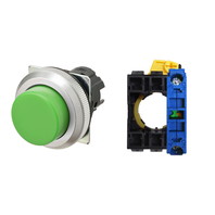 押ボタンスイッチ(φ30), 非照光, 金属ベゼル, 突出形, モーメンタリ, ボタンの色: 緑(不透明), IP66, ねじ端子台, 接点構成: NO/-/-