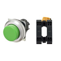 押ボタンスイッチ(φ30), 非照光, 金属ベゼル, 突出形, モーメンタリ, ボタンの色: 緑(不透明), IP66, プッシュインPlus端子台, 接点構成: NO/-/NO