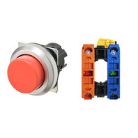押ボタンスイッチ(φ30), 非照光, 金属ベゼル, 突出形, モーメンタリ, ボタンの色: 赤(不透明), IP66, ねじ端子台, 接点構成: NO/-/NC
