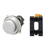 押ボタンスイッチ(φ30), 非照光, 金属ベゼル, 突出形, モーメンタリ, ボタンの色: 白(不透明), IP66, プッシュインPlus端子台, 接点構成: NO/-/NC