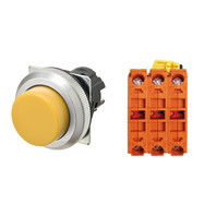 押ボタンスイッチ(φ30), 非照光, 金属ベゼル, 突出形, モーメンタリ, ボタンの色: 黄(不透明), IP66, ねじ端子台, 接点構成: NC/NC/NC