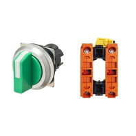 セレクタスイッチ(φ30), 非照光, 3ノッチ, 金属ベゼル, 左に自動復帰, 操作部色: 緑(不透明), IP66, ねじ端子台, 接点構成: NC/-/NC