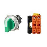 セレクタスイッチ(φ30), 非照光, 3ノッチ, 金属ベゼル, 左に自動復帰, 操作部色: 緑(不透明), IP66, ねじ端子台, 接点構成: NC/NC/-