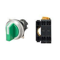 セレクタスイッチ(φ30), 非照光, 3ノッチ, 金属ベゼル, 左に自動復帰, 操作部色: 緑(不透明), IP66, プッシュインPlus端子台, 接点構成: NC/NC/-