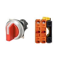 セレクタスイッチ(φ30), 非照光, 3ノッチ, 金属ベゼル, 左に自動復帰, 操作部色: 赤(不透明), IP66, ねじ端子台, 接点構成: -/NC/NC