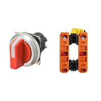 セレクタスイッチ(φ30), 非照光, 3ノッチ, 金属ベゼル, 左に自動復帰, 操作部色: 赤(不透明), IP66, ねじ端子台, 接点構成: NC/-/NC