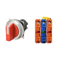 セレクタスイッチ(φ30), 非照光, 3ノッチ, 金属ベゼル, 左に自動復帰, 操作部色: 赤(不透明), IP66, ねじ端子台, 接点構成: NC/NO/NC