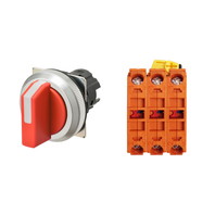 セレクタスイッチ(φ30), 非照光, 3ノッチ, 金属ベゼル, 左に自動復帰, 操作部色: 赤(不透明), IP66, ねじ端子台, 接点構成: NC/NC/NC