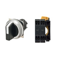 セレクタスイッチ(φ30), 非照光, 3ノッチ, 金属ベゼル, 手動復帰, 操作部色: 黒(不透明), IP66, プッシュインPlus端子台, 接点構成: -/NC/NC